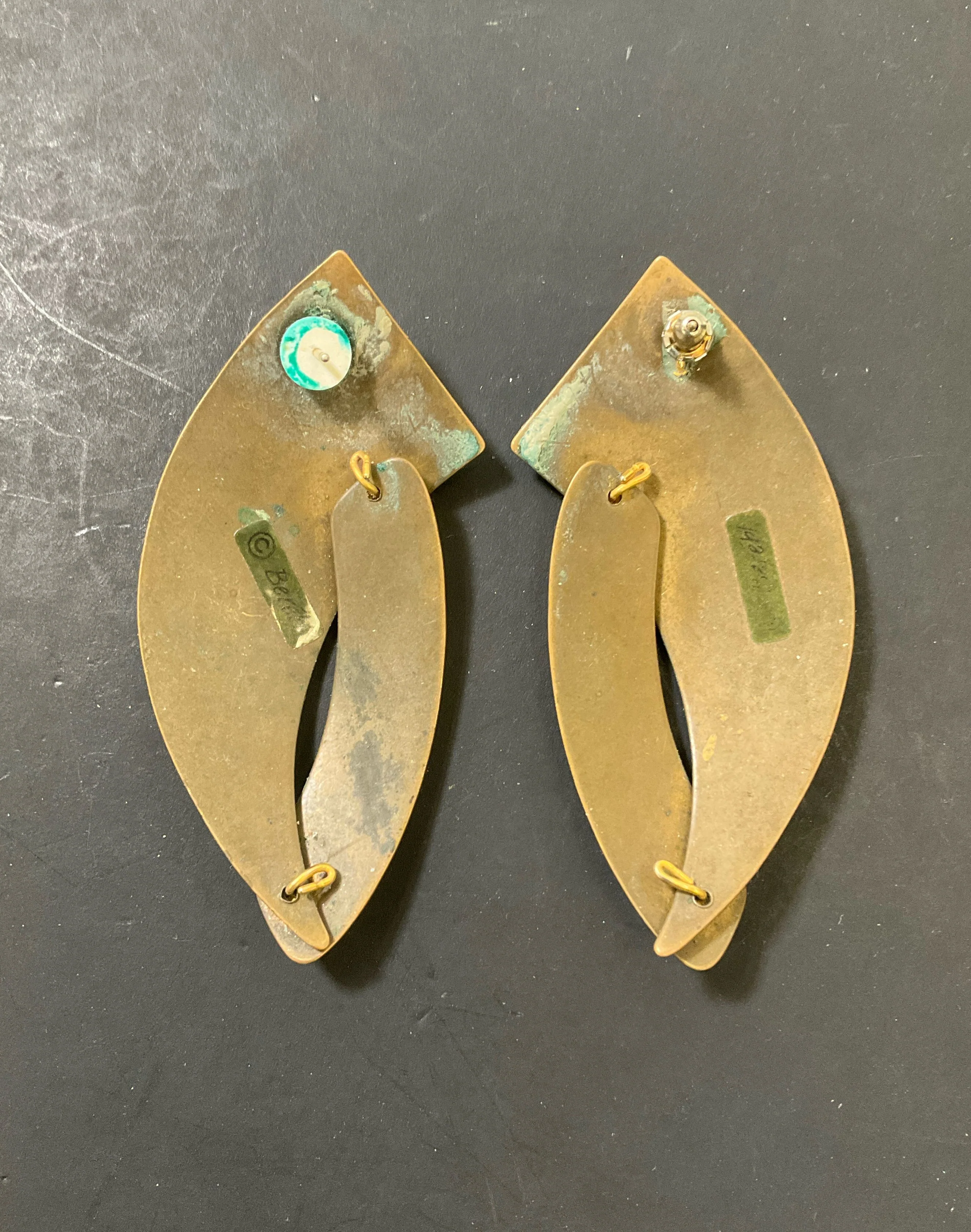 Vintage Edgar Berebi Yellow & Green Enamel Pierced Statement Fashion Earrings
